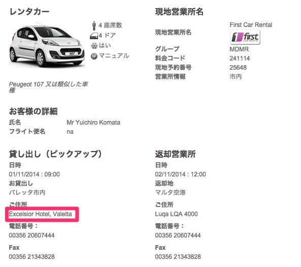 この日はレンタカーを借りることにしていました。滞在先のヴァレッタ市内でのレンタル。しかし、レンタル場所はヴァレッタでも高級ホテルの一つとされるエクセルシオールホテルを指定されました。