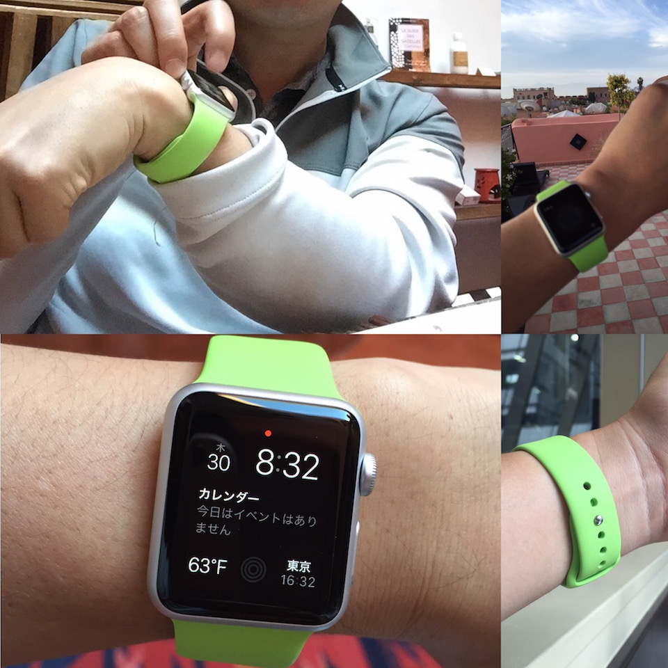 このサイズでもどうにか付けられるそうでしたが、余裕を持って一つ上のサイズM/Lのベルトに取替えました。取替え作業は非常に簡単、この辺りさすがよく考えてるApple。