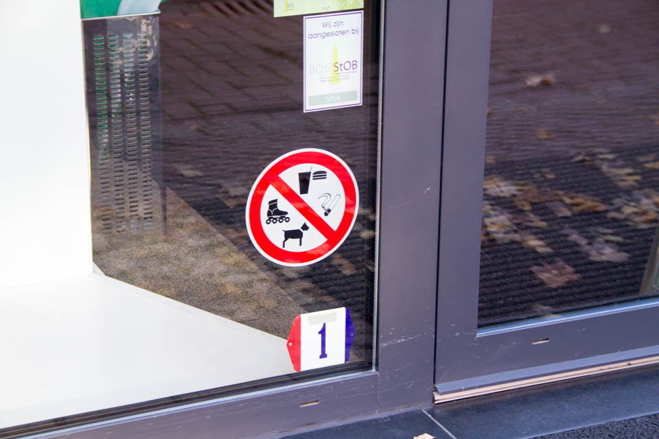 しかし、道路の上といった「外」で国境があるのは普通といえば普通。ところがこの街は、やっぱり他となんか違う。例えば、これはとあるお店の入り口の写真ですが、お店の入り口まではベルギー領ですが、お店の中はオランダ領なのです。