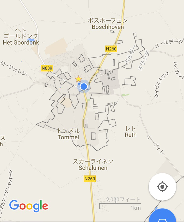 そして、オランダ国境を超えて5分程度で目的地バールレ・ナッソーに到着しました。街の南側からの到着です。まずは駐車場を見つけるため街の中心を目指しましたが、すでに街に入った時点で、ベルギーに入ったりオランダに入ったりしていたようです。