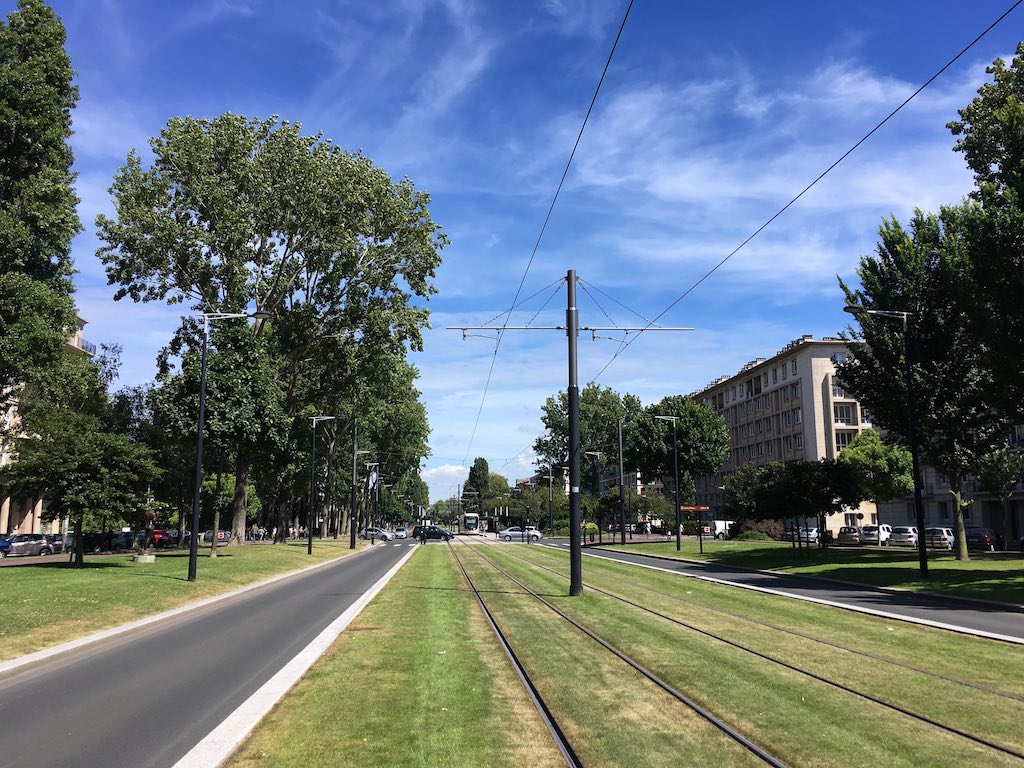 このくらいの広い道がいたるところにある感じです。トラムも走っています。渋滞はなさそうですが、なんだか閑散としすぎているようにも思えます。