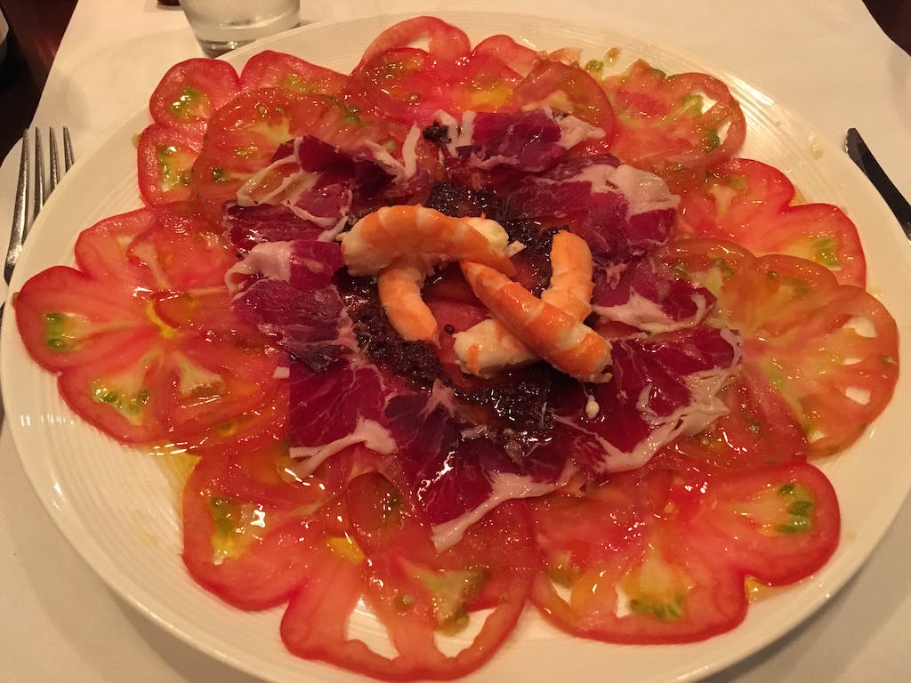 ここでいただいたのは、生ハムとトマトのカルパッチョ。とても美味しかったけどちょっと塩がきつかったか。