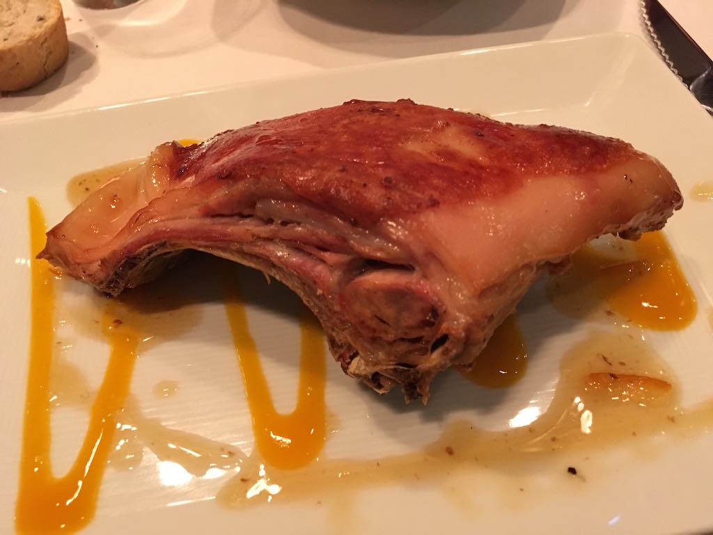 そして子豚のグリル。子豚料理は代表的なスペイン料理のひとつとのこと。非常に柔らかく癖も少ないのが特徴。ソースは非常に甘いハチミツ風味でこれが柔らかいお肉との相性が抜群でした。