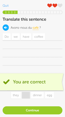 なによりも面白いです。確かに初日は一気に学習を進めましたが、このduolingのテンポ感は自然に学習にハマっていくのが素晴らしい。公文式で習った基本文法、単語の復習にも持って来いですね。