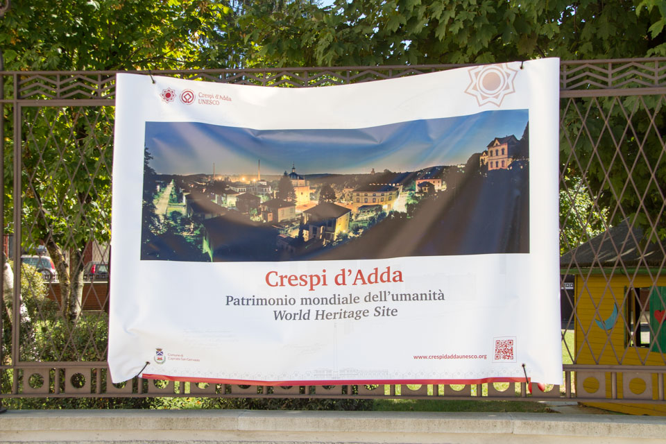 アッダ川のほとりにあるこの街は、19世紀にクリストフェル・クレスピという人が紡績工場をこの地に作り、同時に労働者たちが暮らしやすいように彼らの家はもちろんのこと、教会や教育施設、そして共同墓地をもあわせて作ったそうです。クレスピさんは、当時としては珍しく労働者思いの方でした。イタリア版富岡製糸所といったところでしょうか。