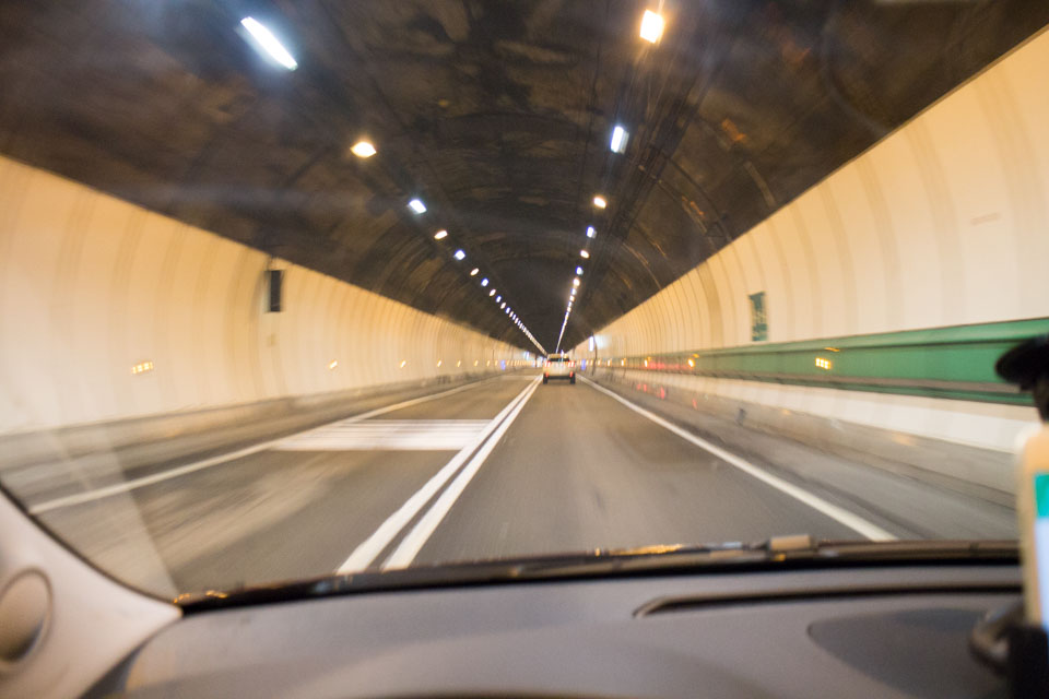 さらにこのトンネルですが、時速70km制限で約11km。車線は片道一車線ずつ。まっすくで単調。面白くないってことはないものの、まあ普通でした(笑)。11kmなので高々10分弱のドライブでした。
