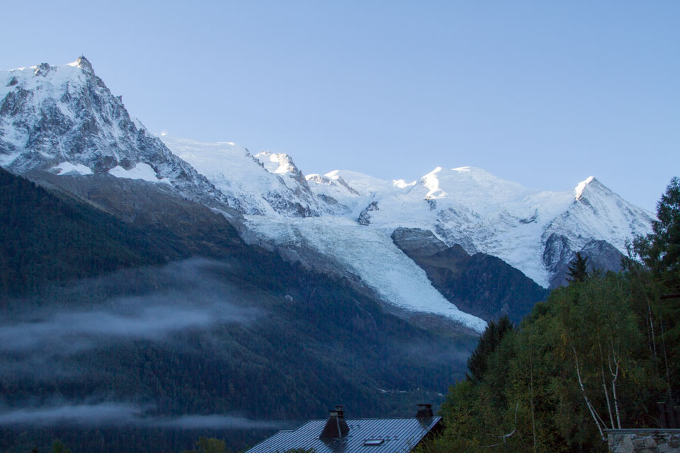 さらに残念だったのは、フランス側の午前は山の日陰となっており、暗くて寒い。シャモニーの街のやや高台までいったものの、シャモニーから見るモンブランは近すぎて正直どれが頂上なのかさっぱりわからない感じ。