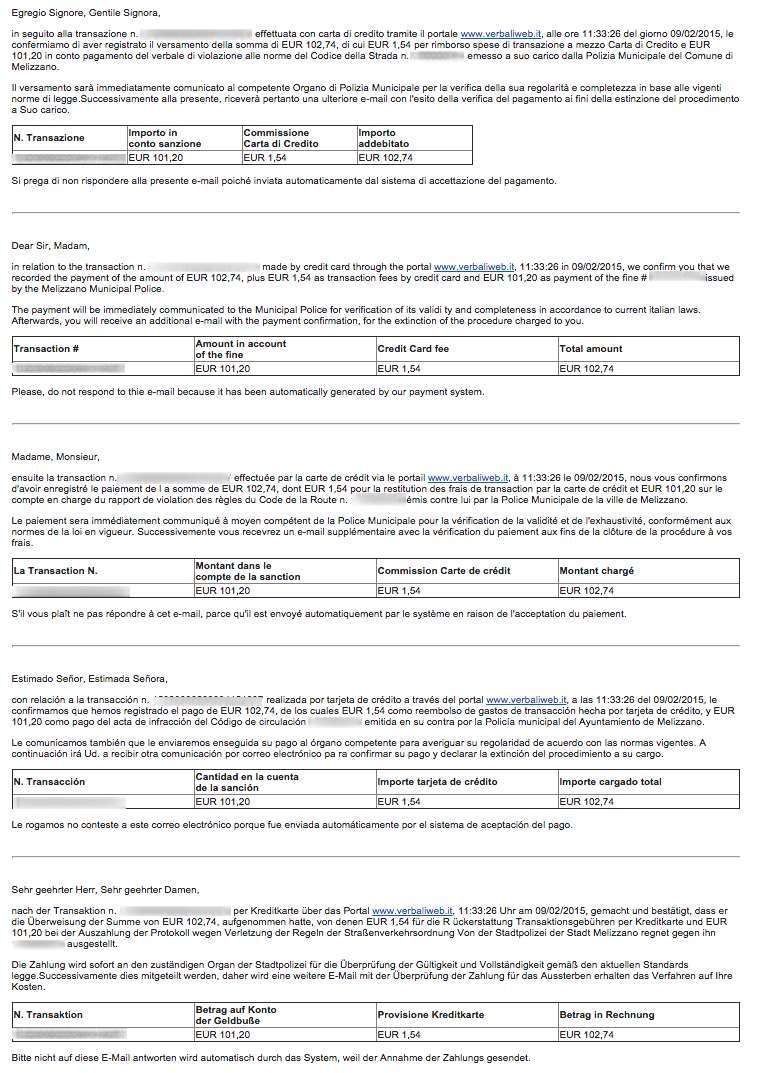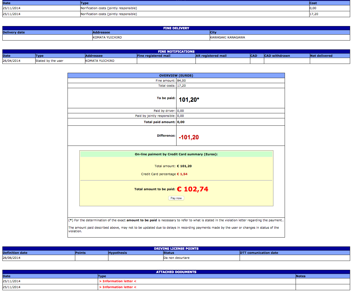 まあ違反は違反だからしぶしぶ支払い手続きを。これは全く問題なくできました。スペインとは違って英語版もあるので、簡単にできました。