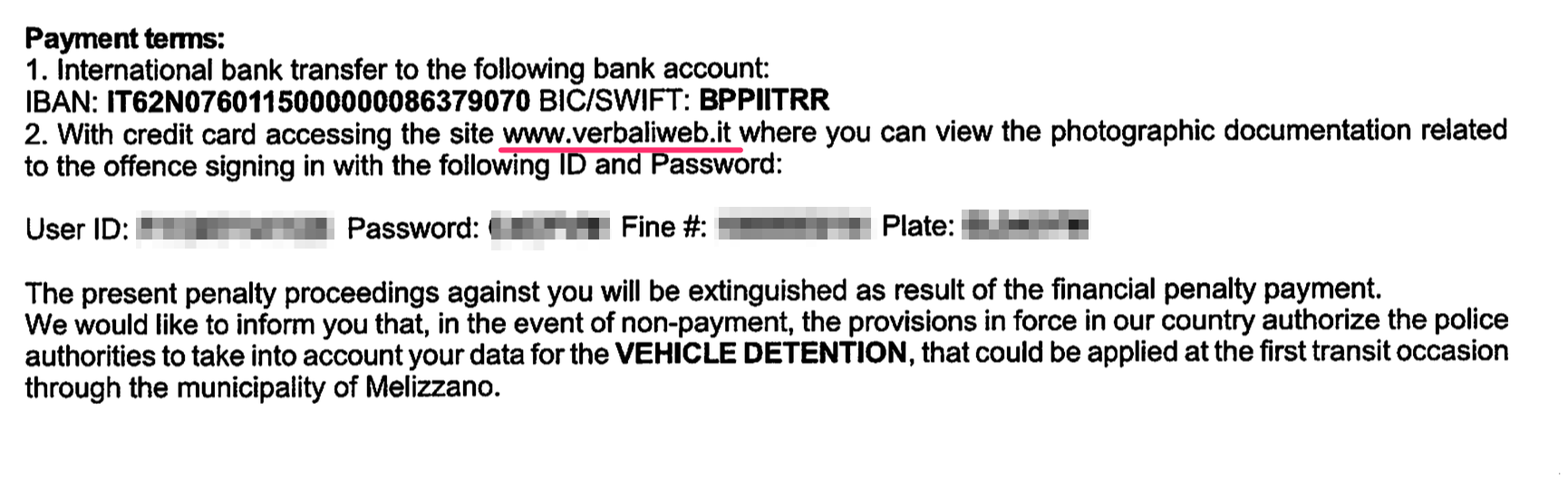 ということで、通知書をあらためて確認。幸いなことにイタリアでもウェブサイトでの支払いに対応しているようです。