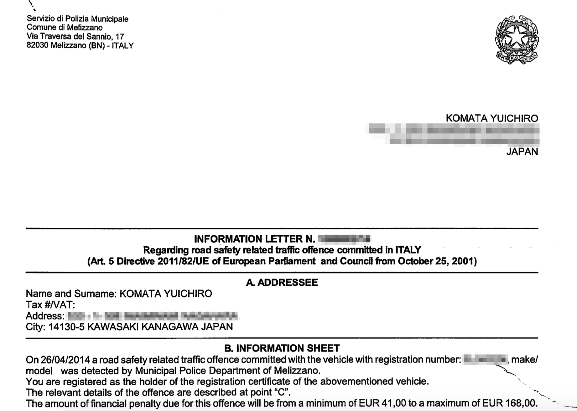 イタリアで交通違反をしていたらしい | my lifelog yuu-koma.jp http://www.yuu-koma.jp/?p=9240