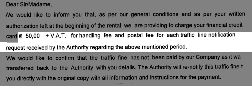 フランスやスペインではそんな手数料はなく、警察からダイレクトに手紙がくる仕組みなのに…。また、以前イギリスで違反した時は、レンタカー会社がその反則金を立替てくれて、まあ若干手数料は取られたけれどこんなにはぼったくられなかったです。