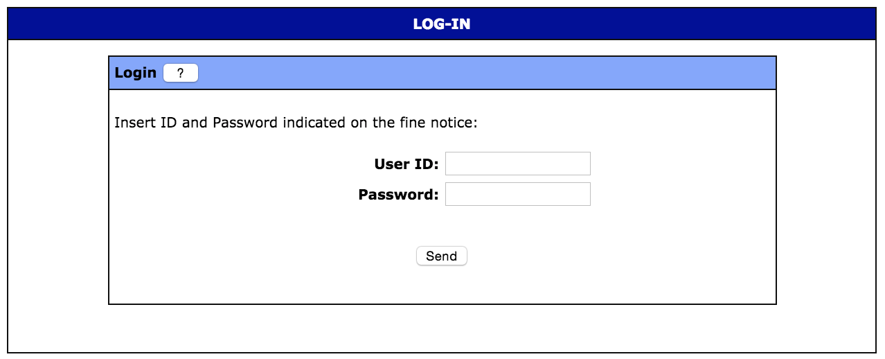 このような画面に進むので、警察からの書類に書かれていたFine #、Plate、そして一番下の日付部分に違反日を入力。